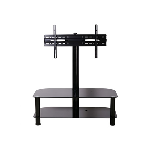 Floor stand BO FS 2642 Suited for Most screens up to 55” Load Capacity 40 kilograms Swivel bracket Vesa 600 x 400 Tempered black glass shelves